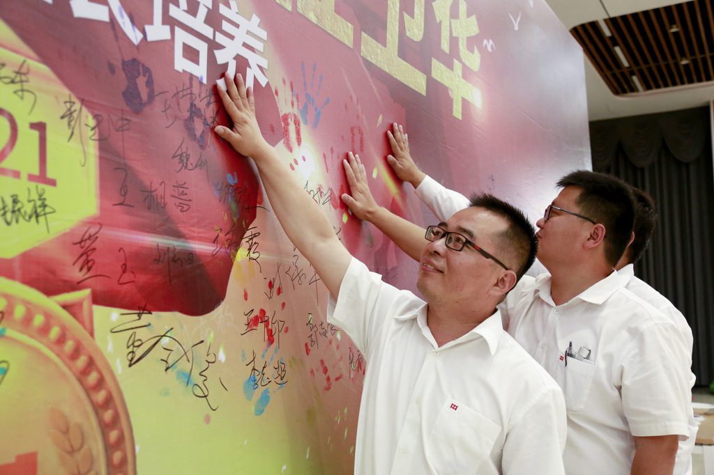 各位班组长学员在当初许下“学习先进管理知识,打造好体育app最新官方入口金牌班组”铮铮誓言的签名墙上留下掌印,五彩斑斓的掌印天空,记录了他们一路成长的印记。