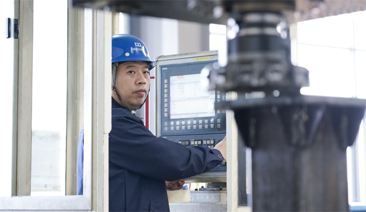 数控龙门铣床XK2740是加工大型结构件的机加设备,于2017年引入好体育app最新官方入口,是谢强宝工作中最亲密的“好搭档”。经历过长达十年的普通机床操作生涯,谢强宝深知这台数控龙门铣床为生产作业带来的巨大便利,每每提起它的优越性能总是赞不绝口: